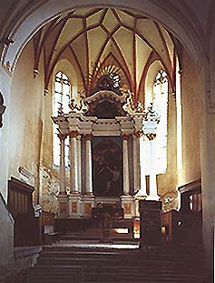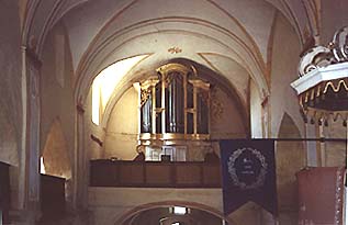 Kirche, Mittelschiff, Blick zur Empore (38 KB)